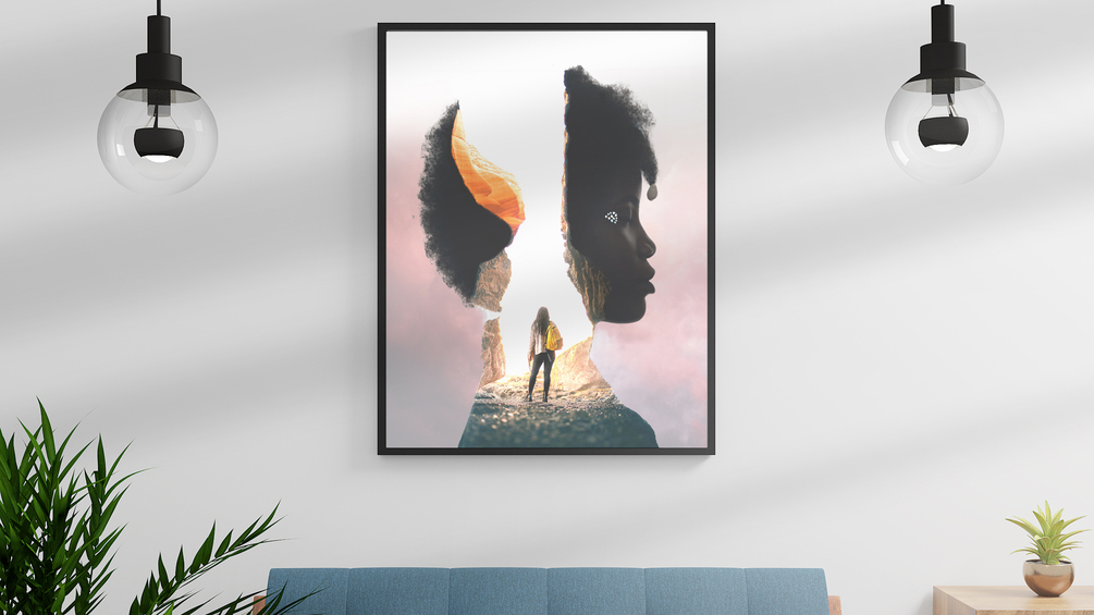 A captivating multi-exposure image intertwines two perspectives: a woman venturing into the depths of a mysterious cave, her eyes open in wonder, and another woman with her eyes closed, lost in a dream. One embodies the thrill of exploration, while the other drifts into the realms of imagination, creating a mesmerizing contrast between the adventurous and the introspective.